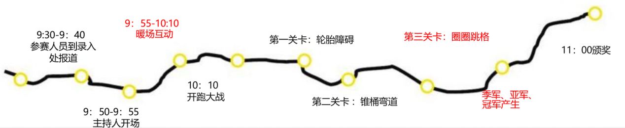 活动采取计时方式,前三名冲到终点处者按照先后顺序成为季军、亚军、冠军,并颁发相应礼品。